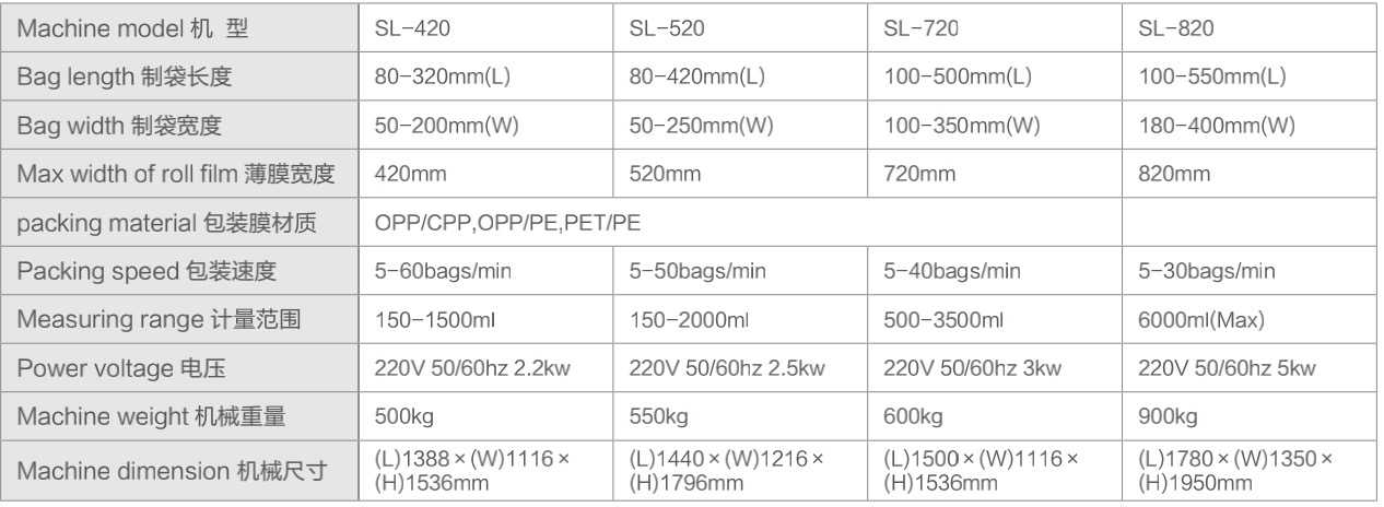 1.采用彩色觸摸屏和穩(wěn)定可靠的雙軸高精度輸出的PLC控制、制袋、計量、充填、封合、打碼、切袋一次性完成。