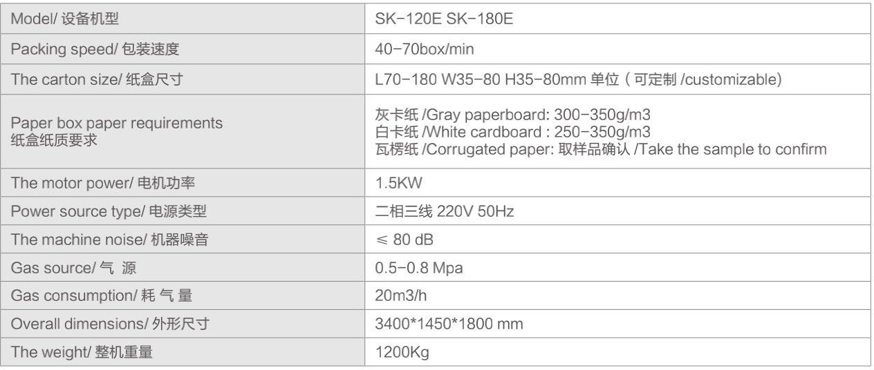 鉤自動成型、產(chǎn)品帶底襯推入紙盒并封盒等功能。